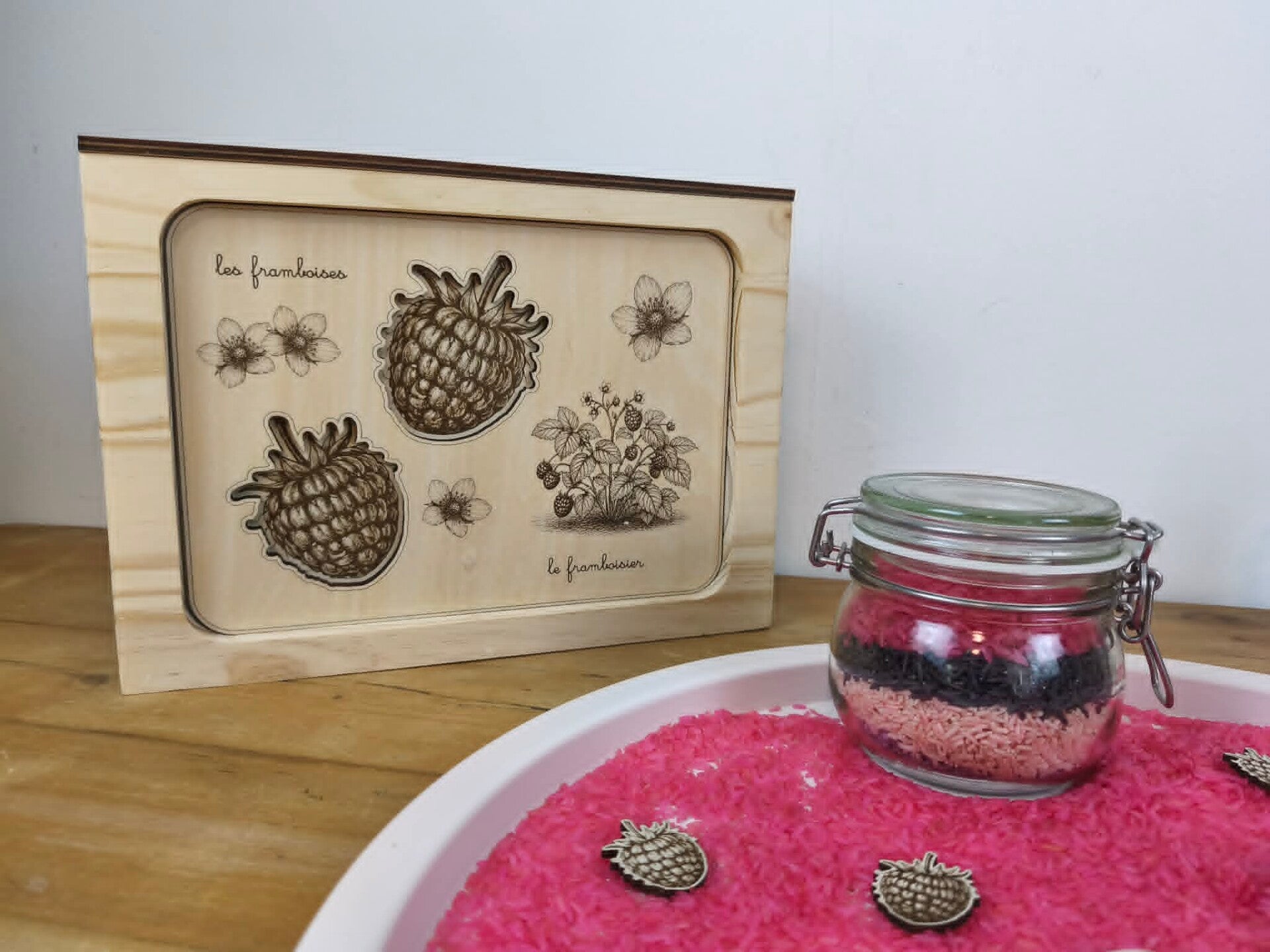 Les Tablettes Lilly Swarm sont la nouveauté de l’atelier. Conçues comme des supports pédagogiques polyvalents, elles peuvent s’utiliser librement sur une table ou s’encastrer dans les stations d’observation, pour enrichir les activités et multiplier les possibilités d’exploration. Chaque tablette propose un univers ou un thème différent et invite l’enfant à manipuler, observer, trier, transvaser ou créer. Remplies de riz coloré, de pompons ou de petits éléments naturels, elles stimulent la motricité fine, la coordination et la concentration, tout en laissant une grande place à l’imagination et à la créativité. Certaines versions permettent également d’explorer le vivant, par exemple en observant des boutures de plantes dans des fioles, ou en réalisant des activités de tri et d’expérimentation. Évolutives et ouvertes, les tablettes accompagnent l’enfant dans ses découvertes et transforment chaque manipulation en une petite expérience d’apprentissage.