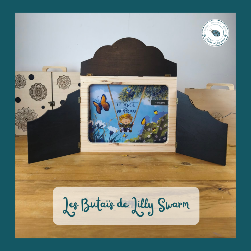Enfin, vous trouverez sur la boutique plusieurs modèles de butaïs. Le kamishibaï fait partie intégrante de notre quotidien depuis des années, et l’Atelier est aujourd’hui reconnu pour son véritable savoir-faire autour du butaï : conception, fabrication et usages pédagogiques.