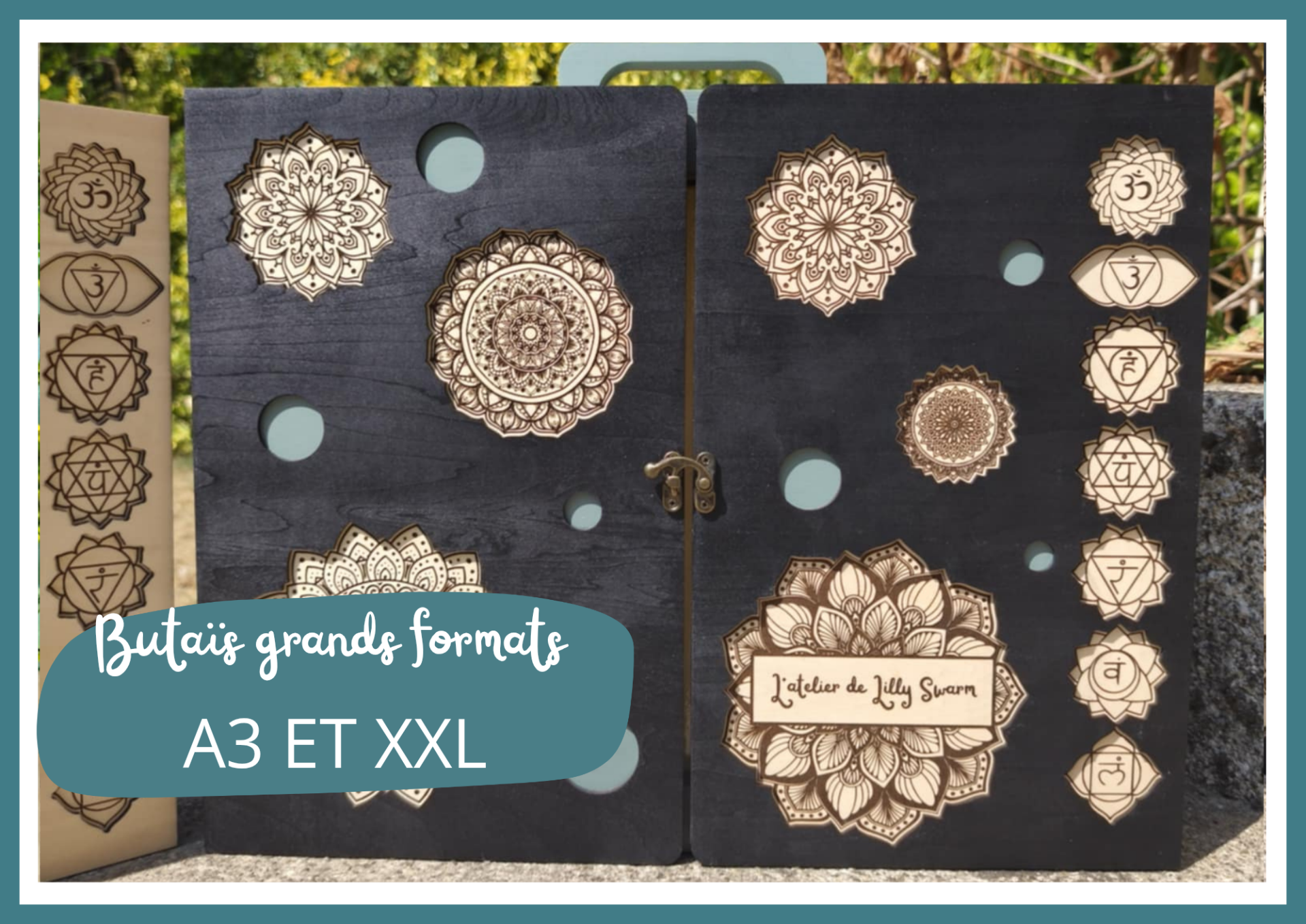 Les butaïs proposés à l’Atelier sont disponibles en formats A4 et A3. Ils sont réalisés en bois véritable, soigneusement travaillé pour garantir une solidité durable, une belle présence visuelle et une utilisation régulière sans fragilité. Contrairement aux versions cartonnées ou très fines, ces modèles sont pensés pour durer, être manipulés par les enfants, et accompagner des années d’histoires, d’apprentissages et de découvertes.
