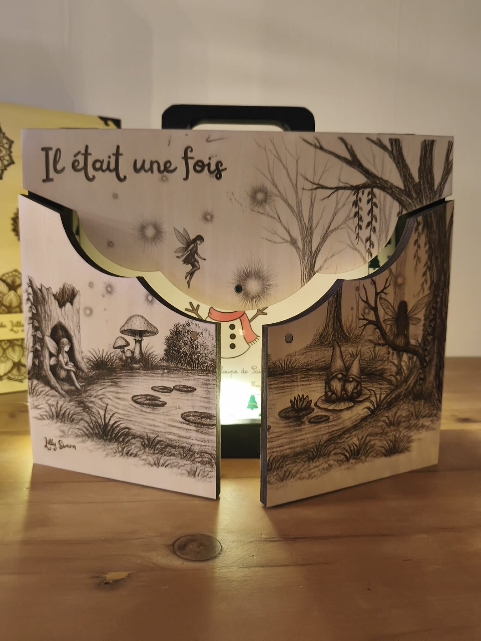Ce modèle dispose de petits aimants incrustés dans la structure, ce qui permet de le transformer en théâtre d'ombres. Pour vous en servir comme d'un théâtre d'ombre, il vous suffit d'acheter le "kit théâtre d'ombre" disponible sur la boutique ICI.