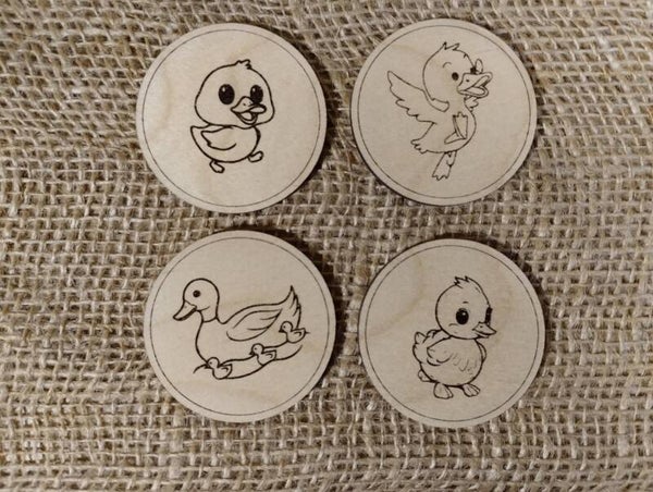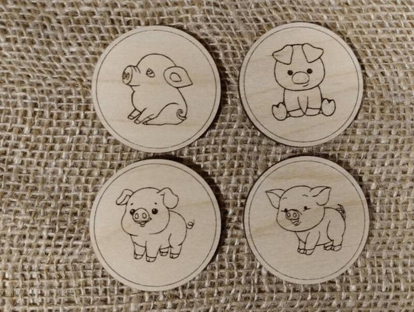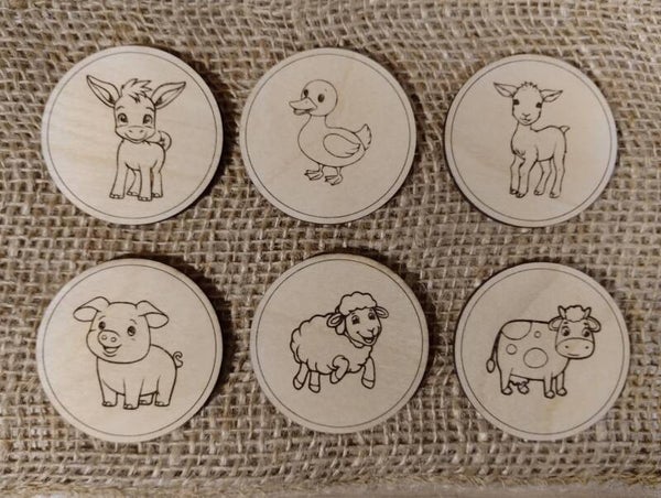 6 jetons aux dessins identiques à ceux des mini livv du même thème