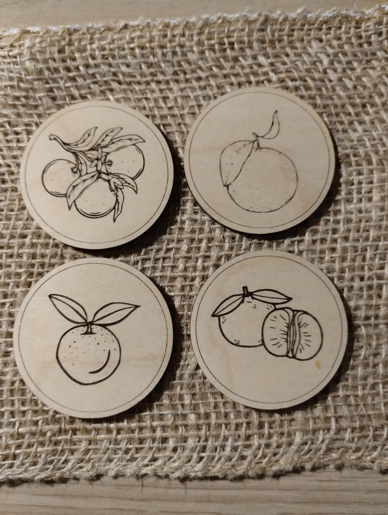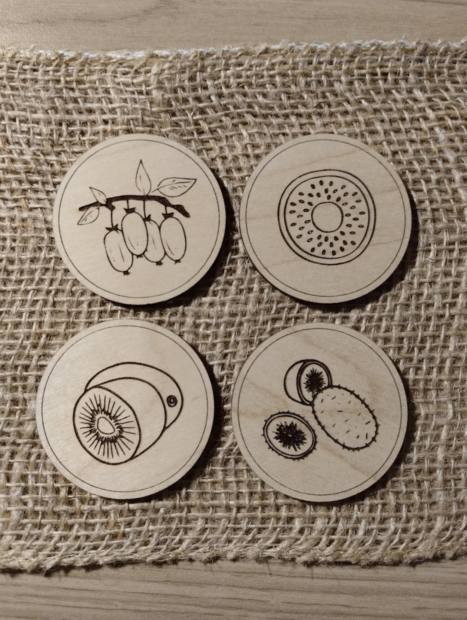 Un lot de 5 jetons par fruit (4+1 au motif identique à la planche).