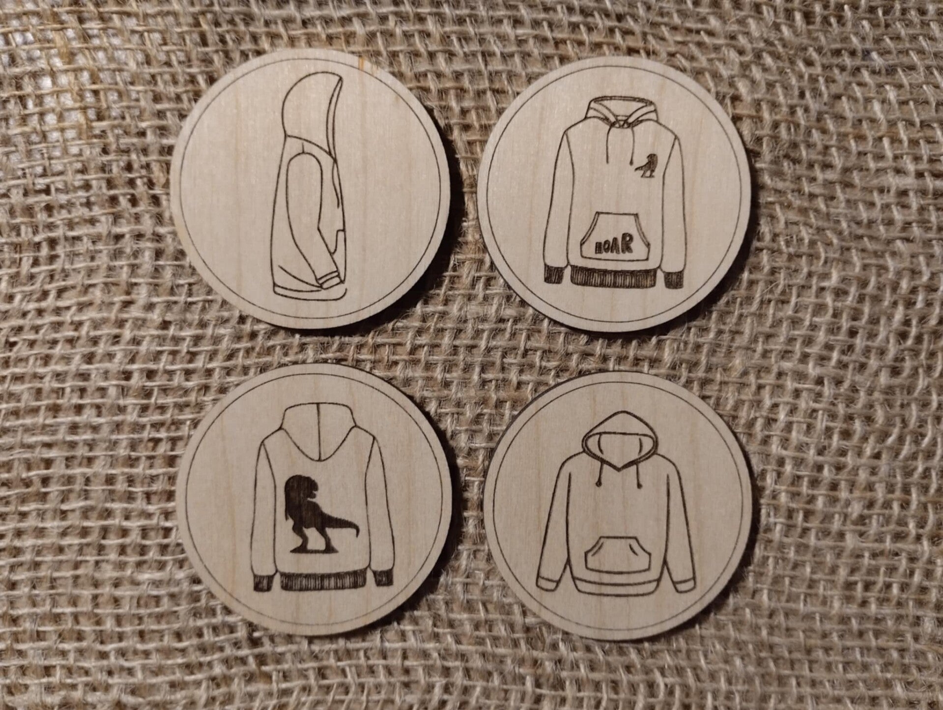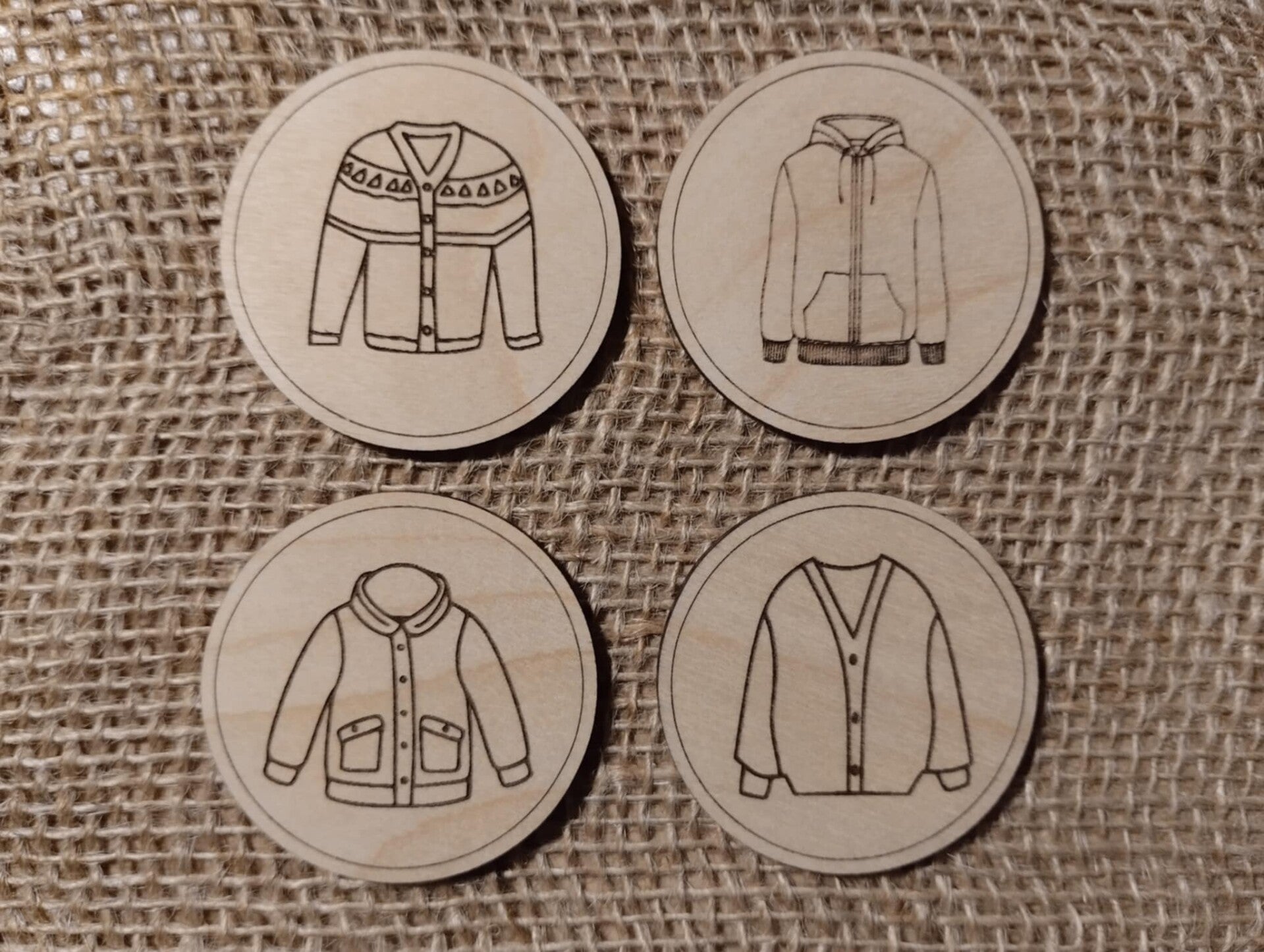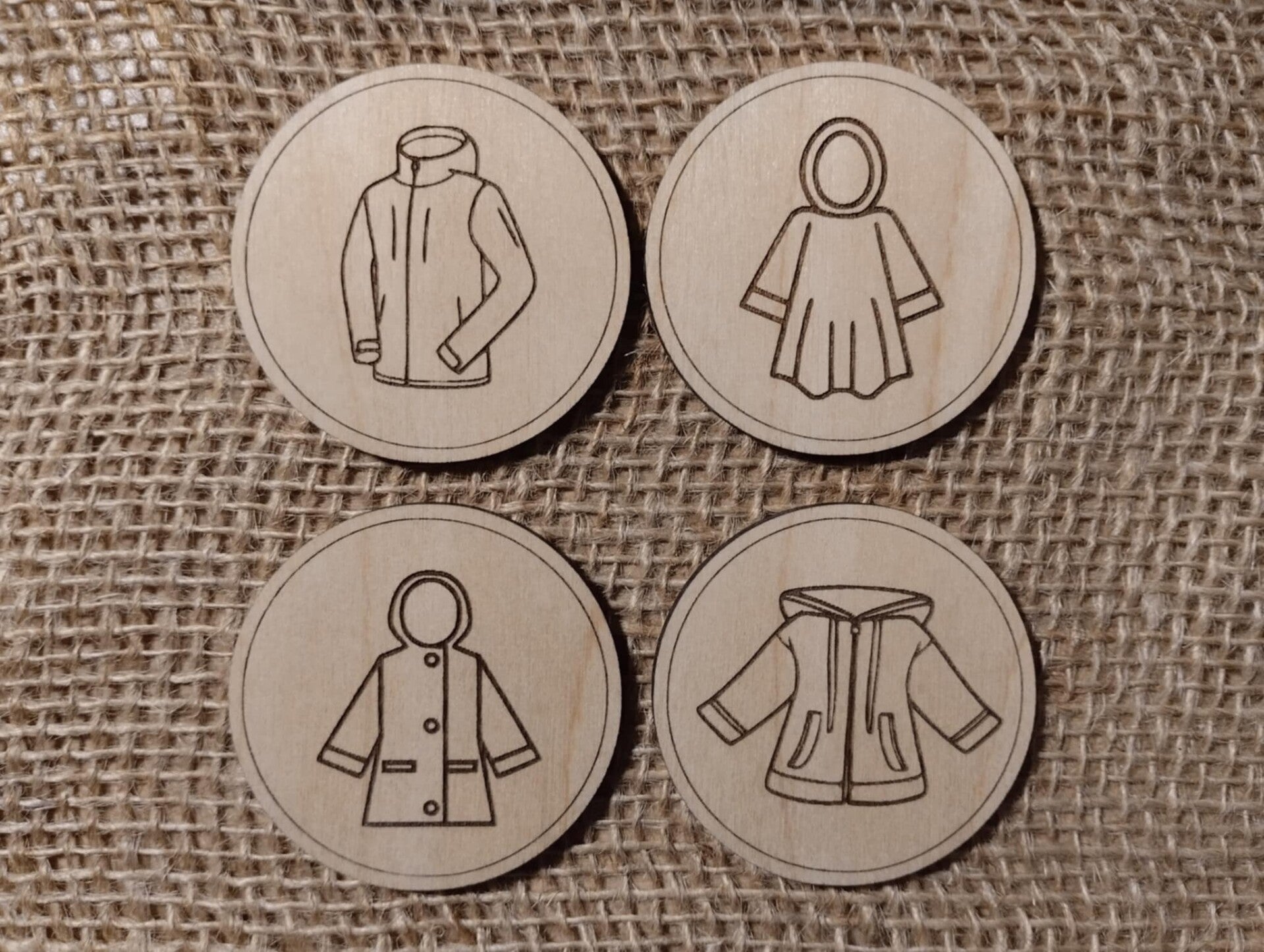 Un lot de 5 jetons par vêtement printemps (4+1 au motif identique à la planche)
