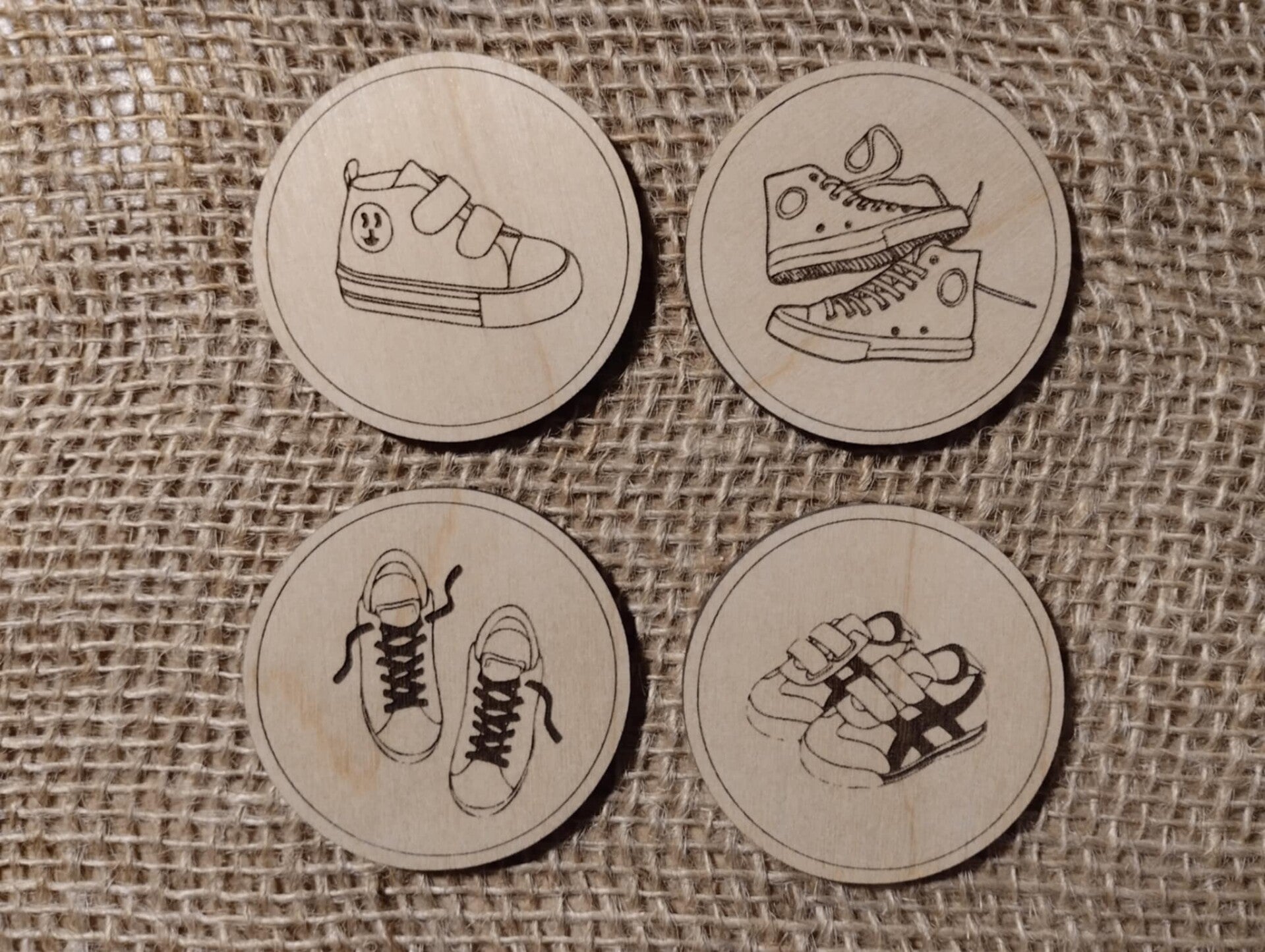 Un lot de six jetons au dessins identiques aux planches printemps.