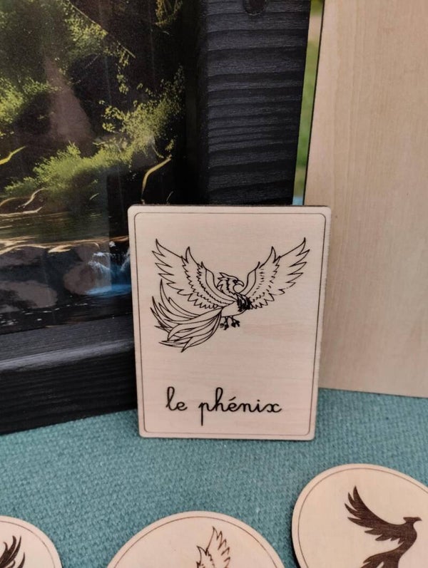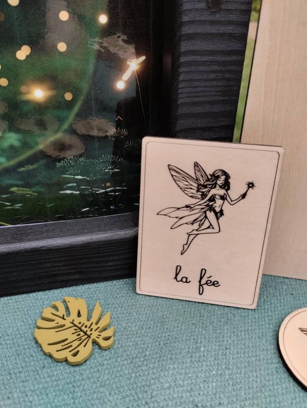 Six cartes de nomenclature bois sur le thème des créatures fantastiques. Mini livv et jetons assortis disponibles sur la boutique.