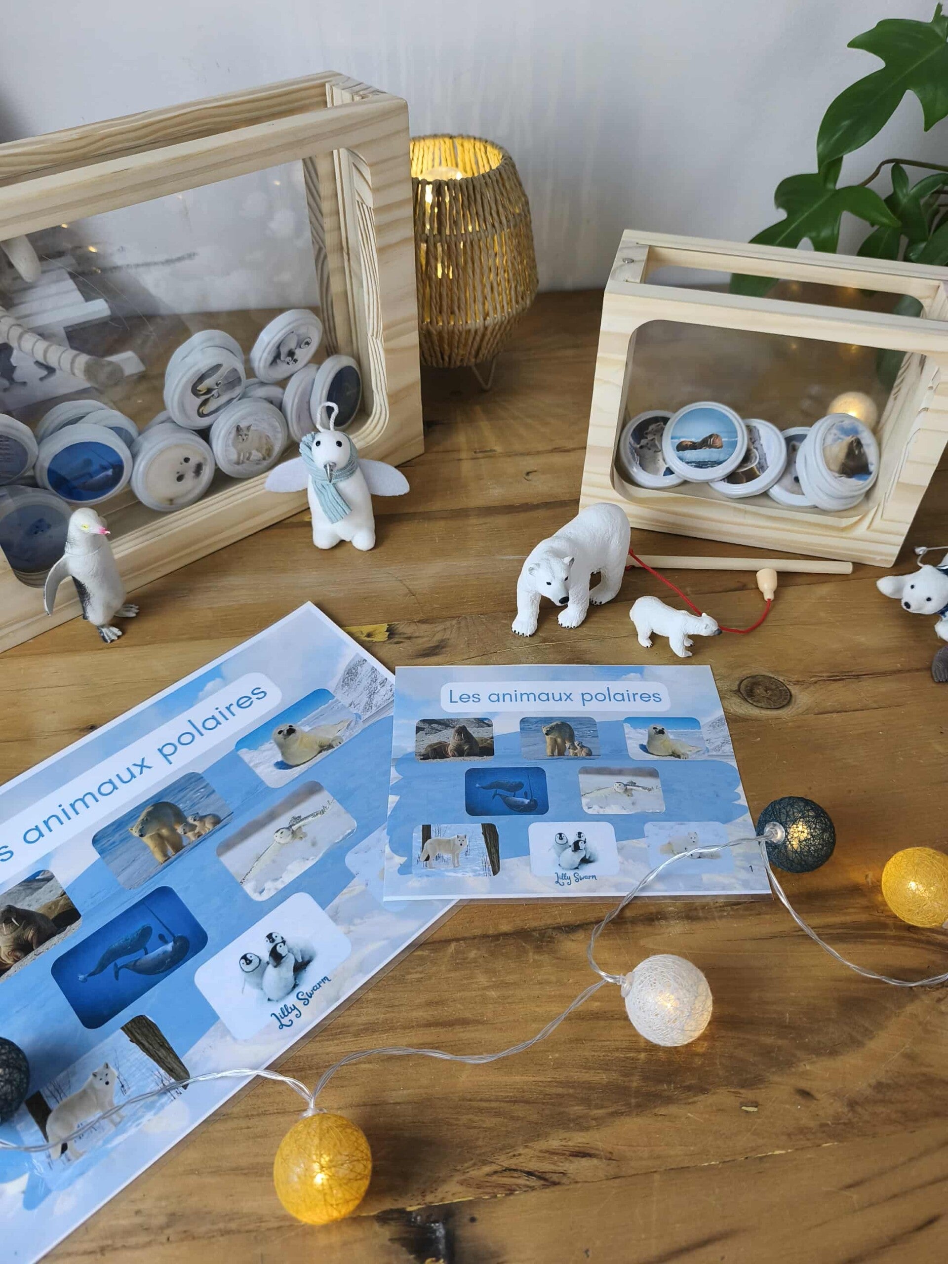 Chaque élément ou animal est représenté par 3 couvercles (autocollants positionnés).