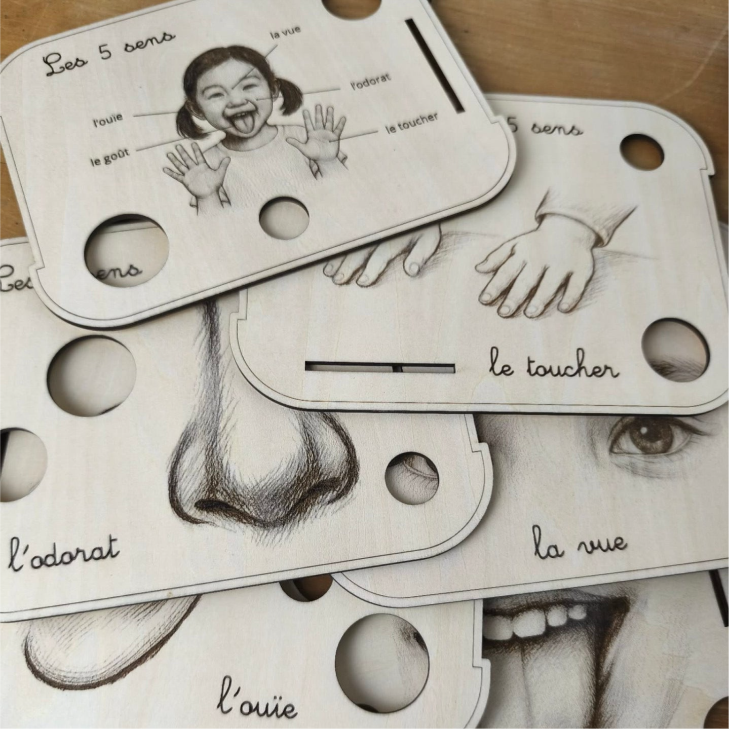 6 planches adaptées aux bacs livv 2l, l'une pour les 5 sens, et une par sens.