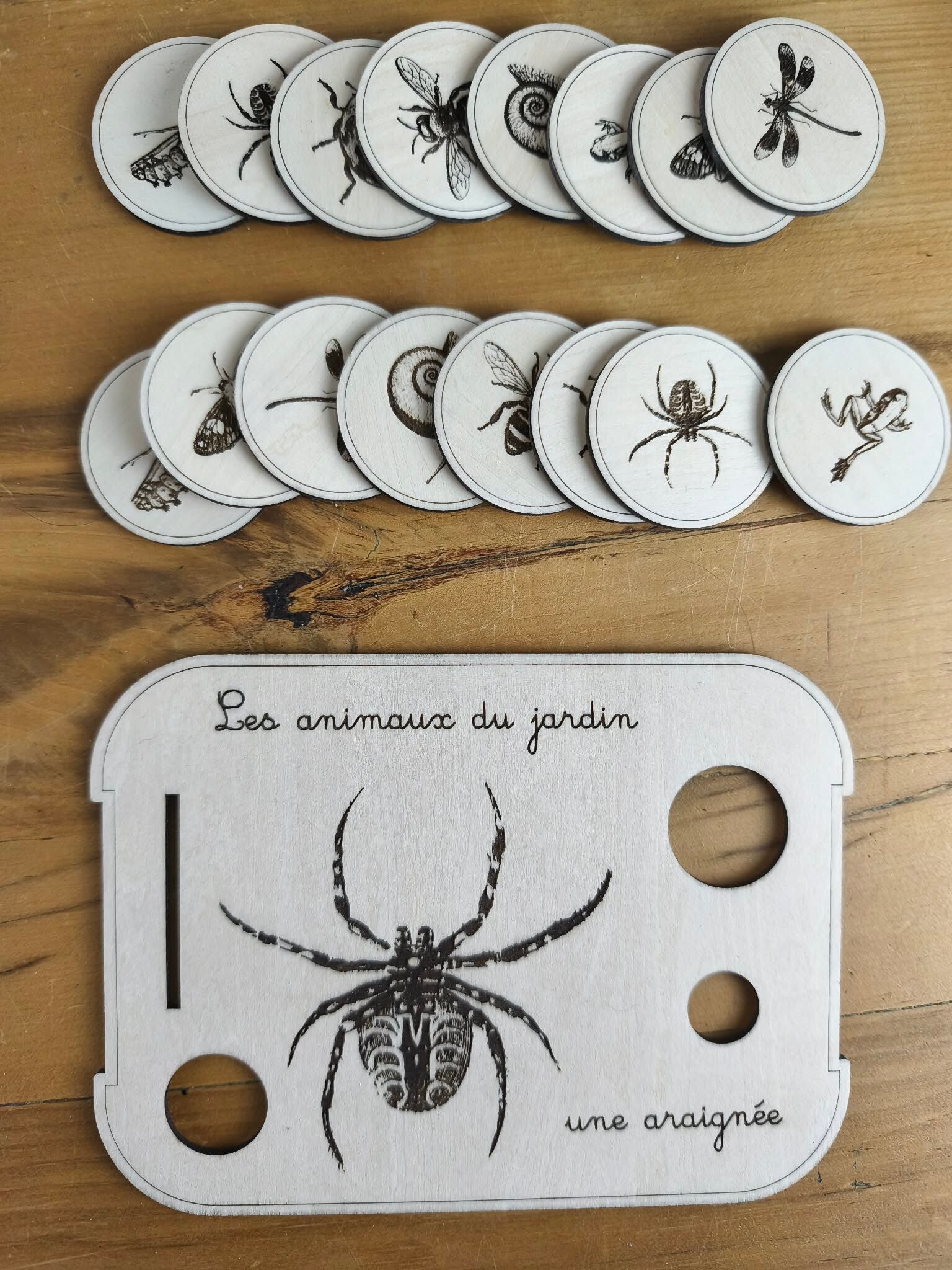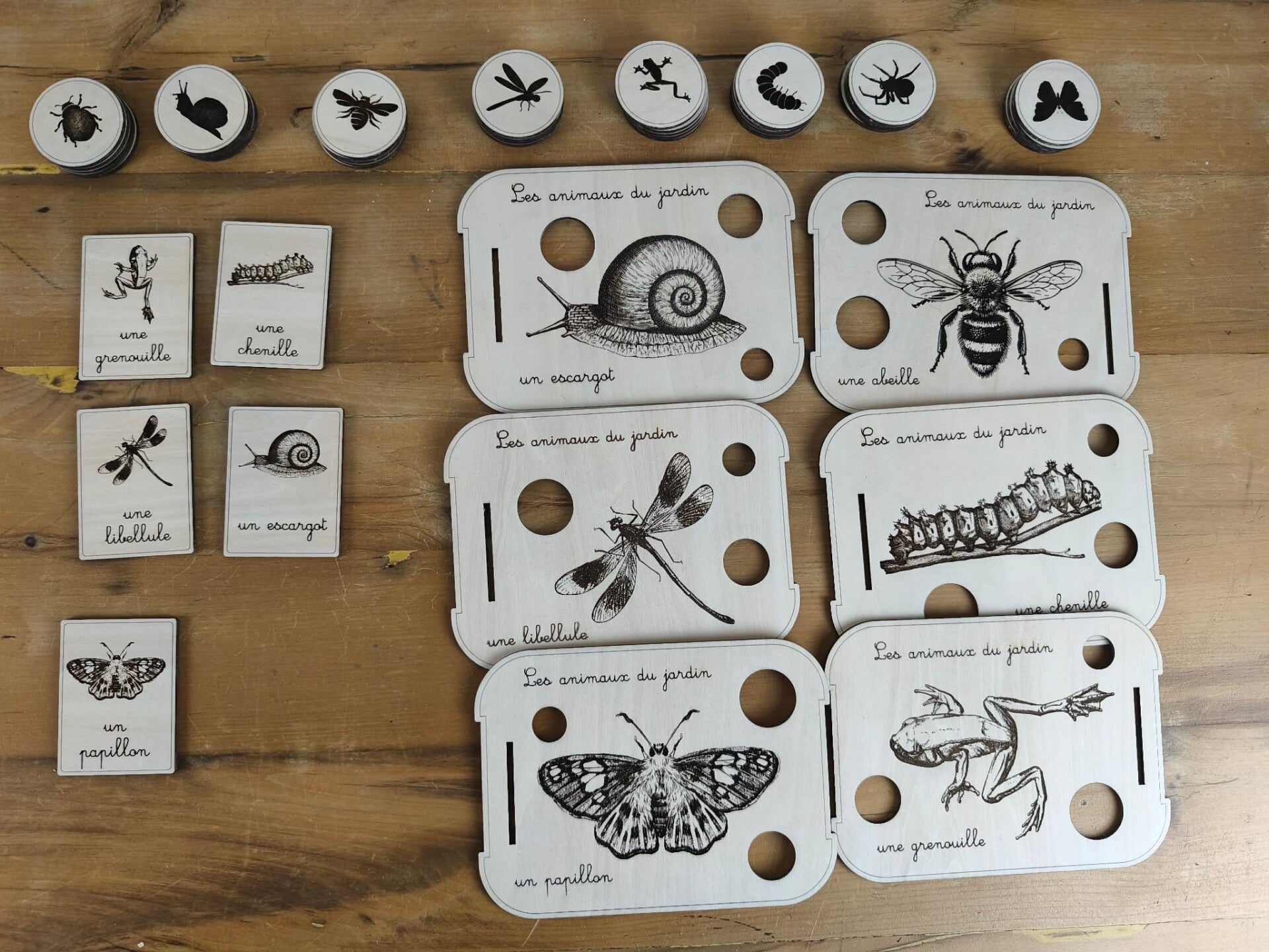 1 planche araignée, 1 escargot, 1 abeille, 1 libellule, 1 chenille, 1 papillon, 1 grenouille adaptées (manque la coccinelle pour être complète) aux bacs livv 2l et à la mini station d'observation