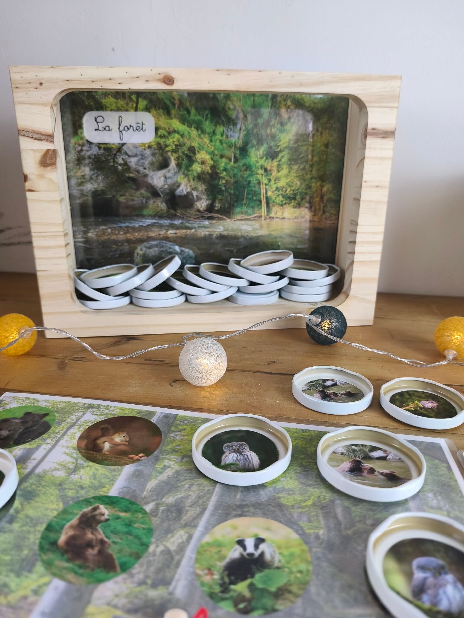 Chaque élément ou animal est représenté par 3 couvercles (autocollants positionnés).