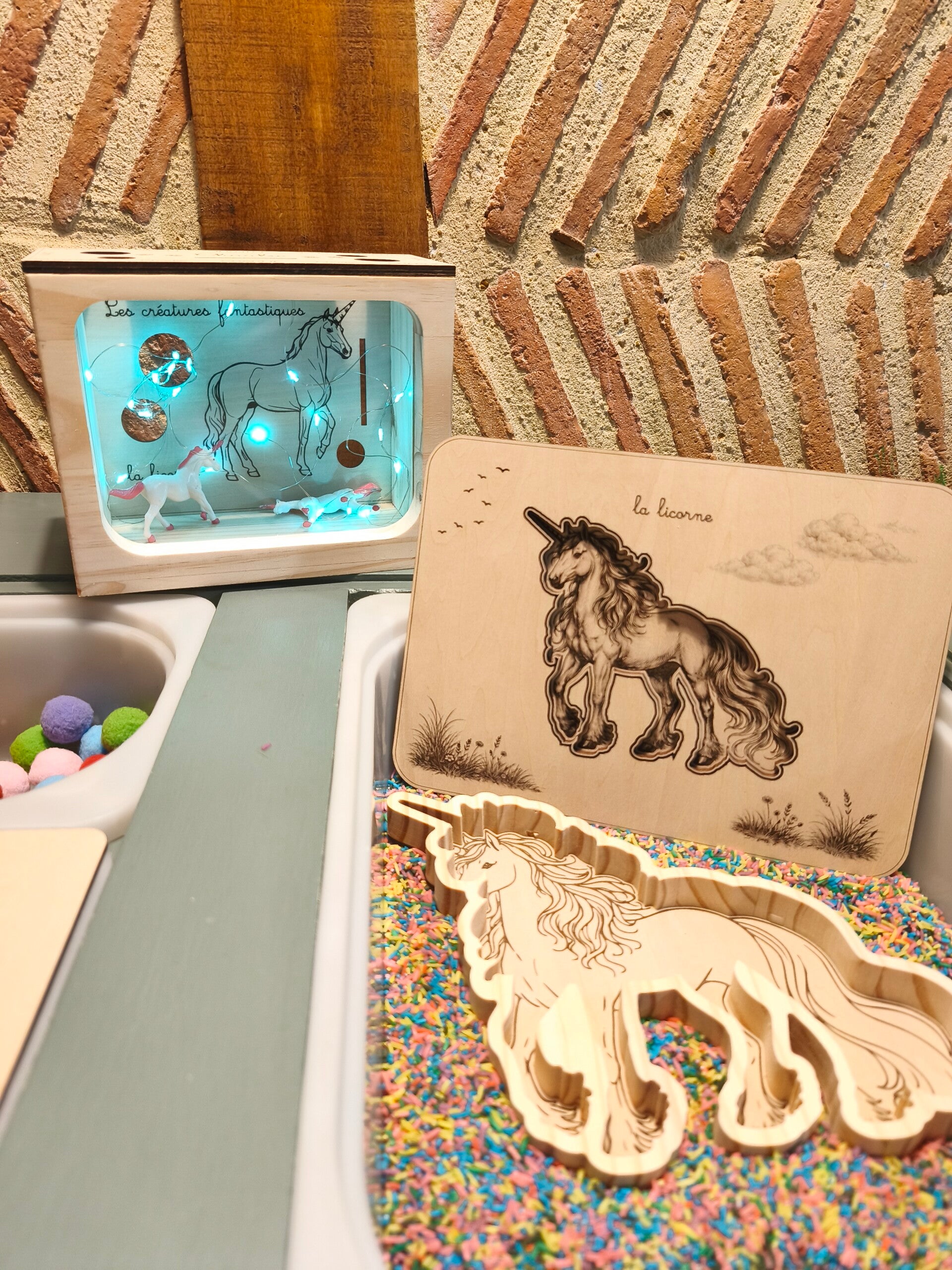 Tablette sur le thème de la Licorne, à utiliser avec la station d'observation Lilly Swarm ou directement sur table.