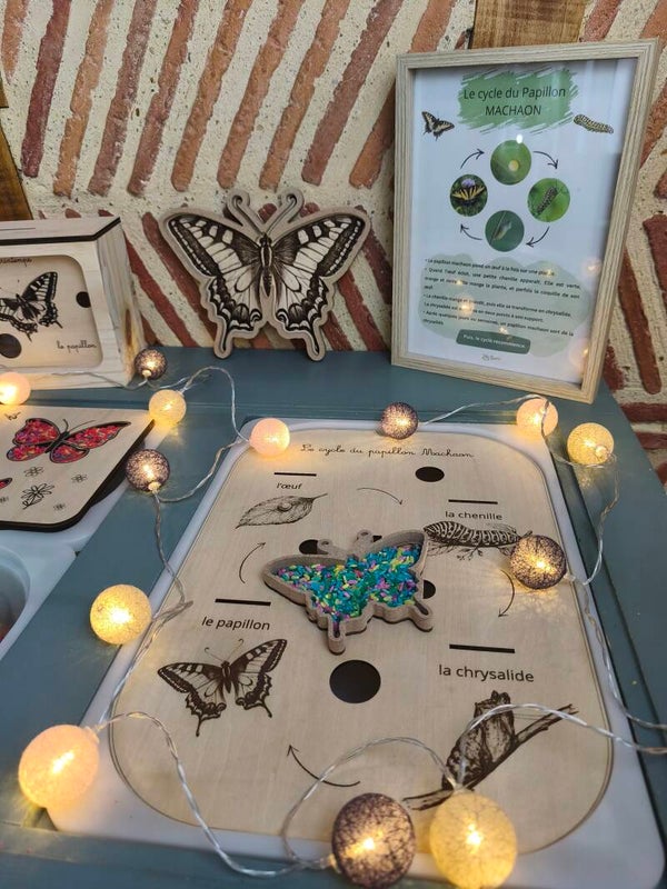 Plateau de motricité sur le thème du papillon machaon, en MDF